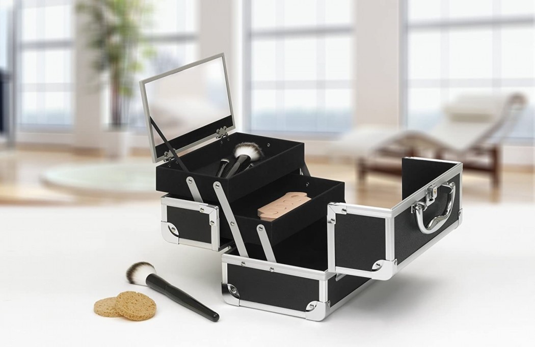 - eleganten kozmetični kovček, večpredalni, z ogledalom