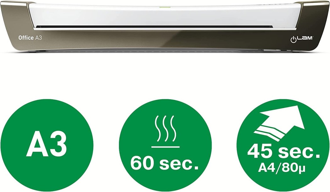 - čas plastificiranje enega lista velikosti A3: 45 sekund