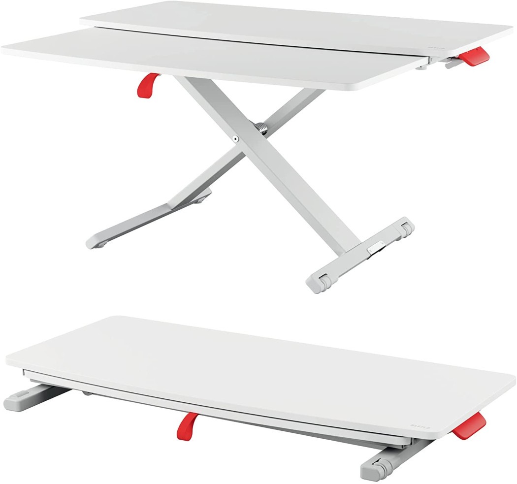 - eleganten in ergonomsko oblikovan pretvornik stoječe mize z drsnim pladnjem za tipkovnico in miško, da ostanete aktivni ves dan
