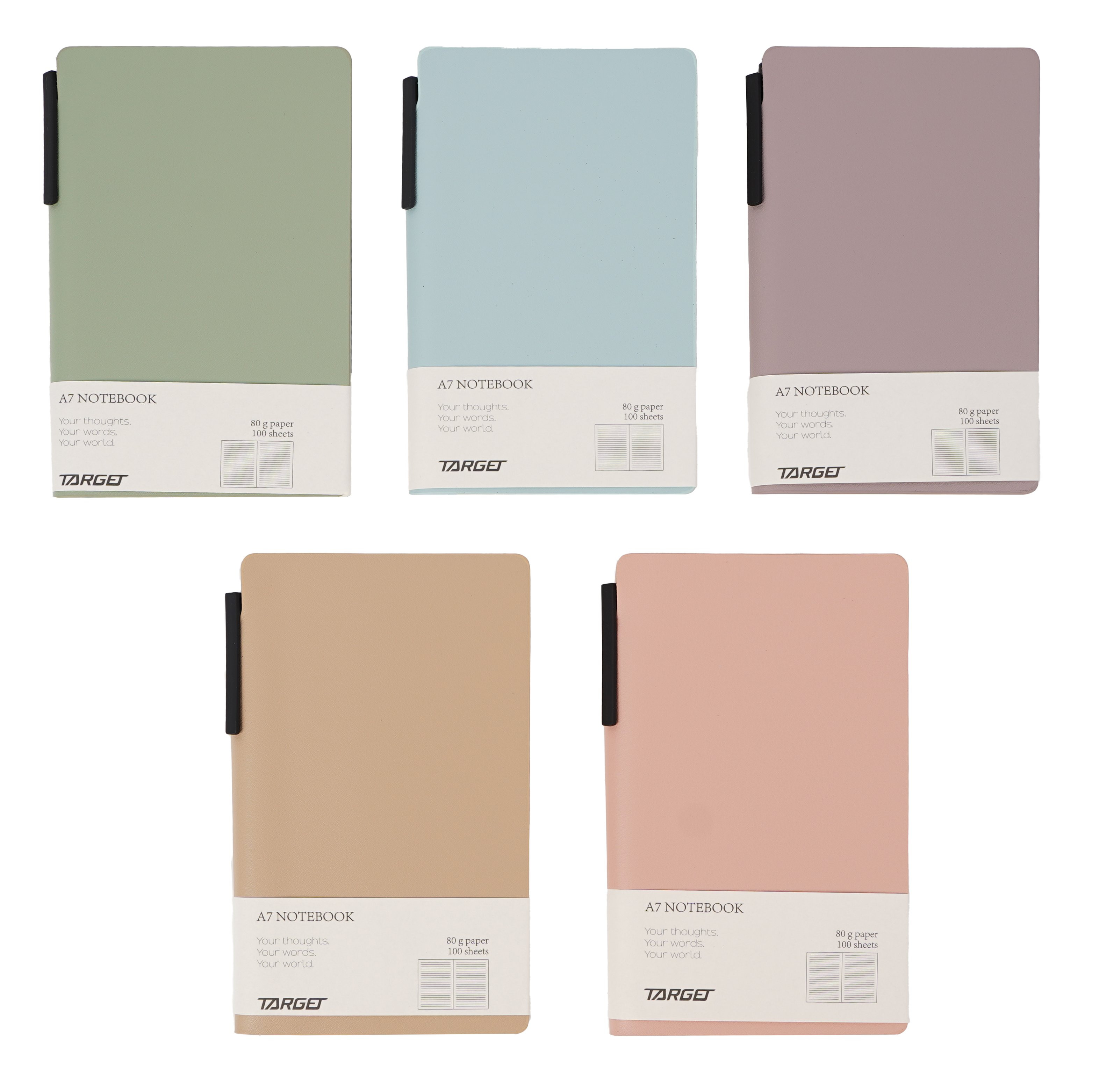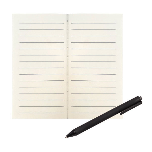 Zelo praktična beležka s črtami in priloženim kemičnim svinčnikom.