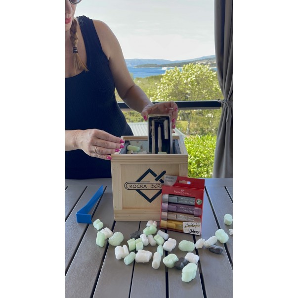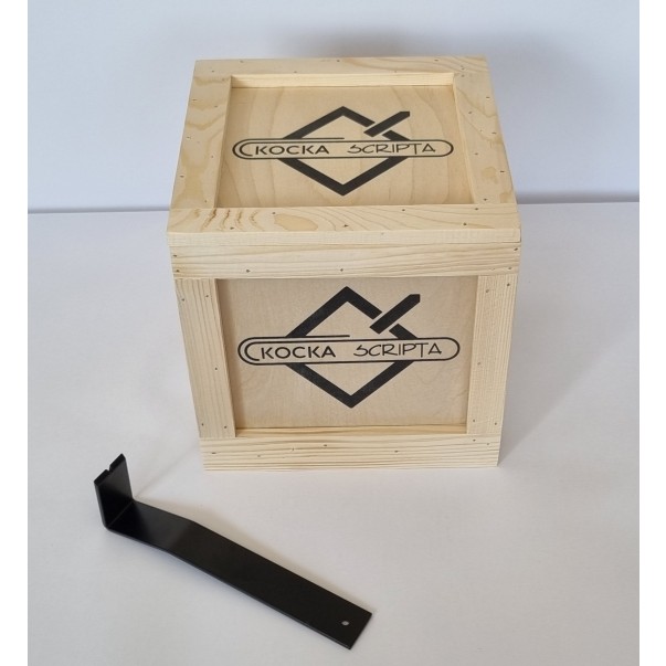 Fino obdelan leseni zaboj, spojen z žeblji in s priloženo lomilko. To je pravi izziv za vsakega.