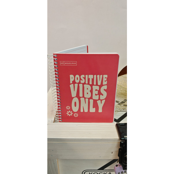 1 x beležka velikosti B6 MIQUELRIUS s spiralo, trdo PVC platnico in napisom POSITIVE VIBES ONLY