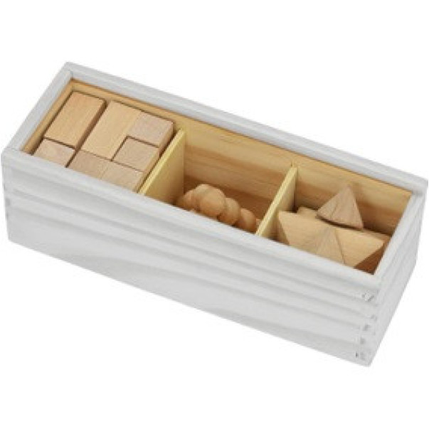 - družabna igra Brain s 3 različnimi lesenimi 3D sestavljankami