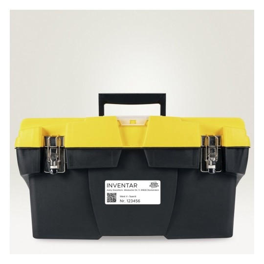 - priporočljivo za: označevanje inventarja in opreme, primerne za uporabo v zaprtih prostorih in na prostem, označevanje regalov v skladiščih