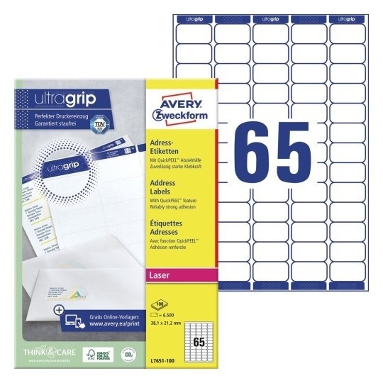 38,1 x 21,2 mm, črno/bel laser, barvni laser, permanentno