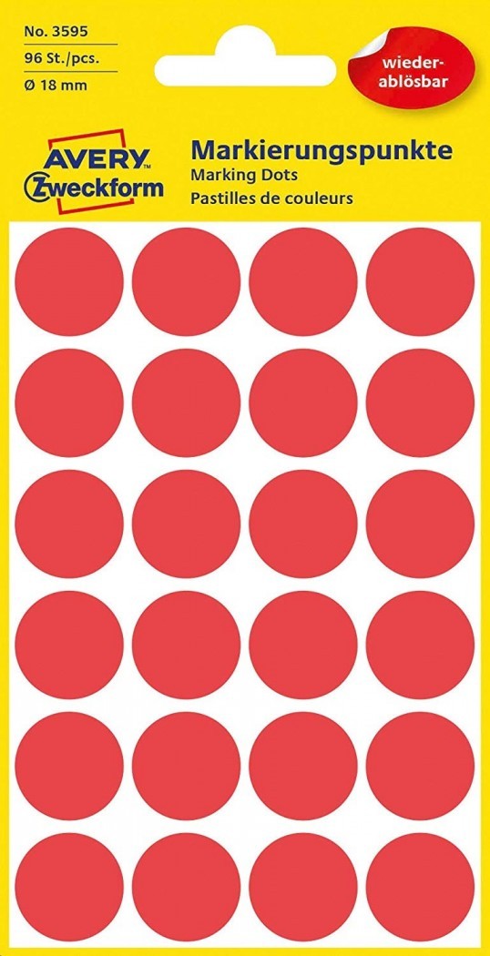 ETIKETE ZWECKFORM OKROGLE FI-18MM (3004 RDEČE)