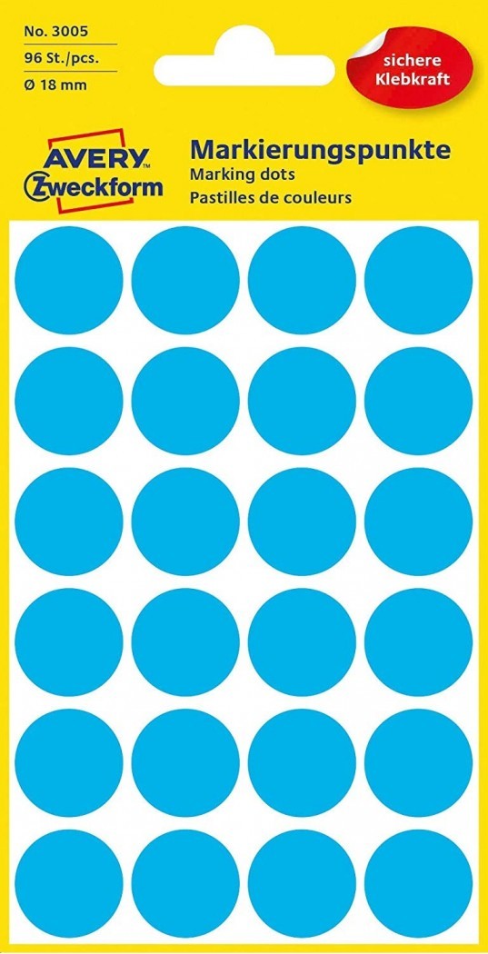 ETIKETE ZWECKFORM OKROGLE FI-18MM (3005 MODRE)