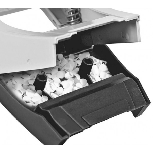 - manjši kovinski luknjač za luknjanje do 16 listov papir 80g/m2) za vsakdanjo uporabo doma ali v pisarni