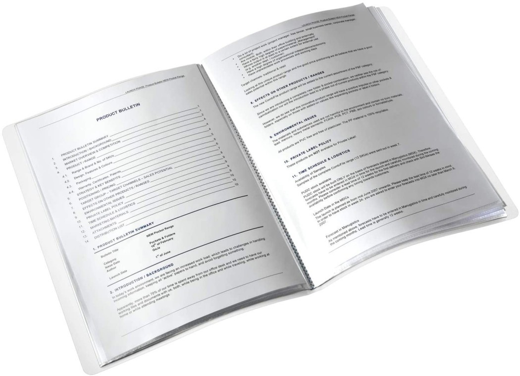 - v njej je 20 prozornih map A4, kamor lahko vložimo 40 listov