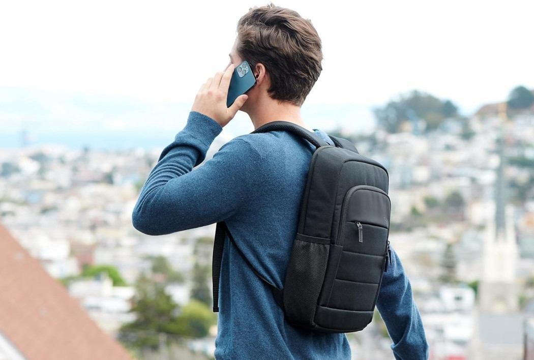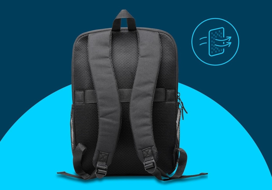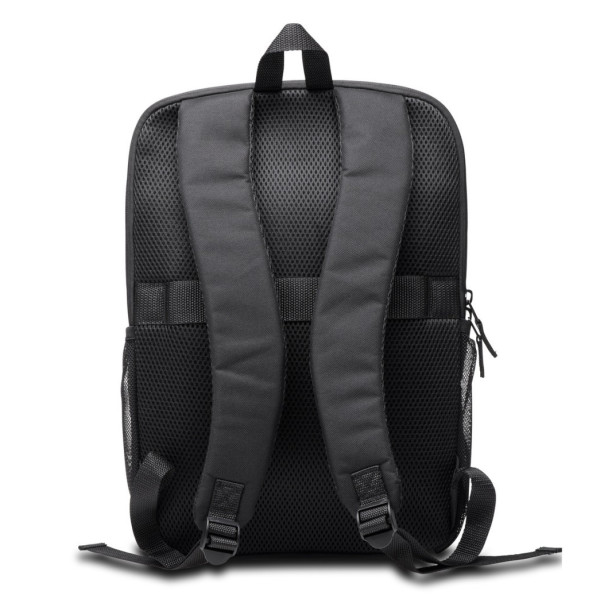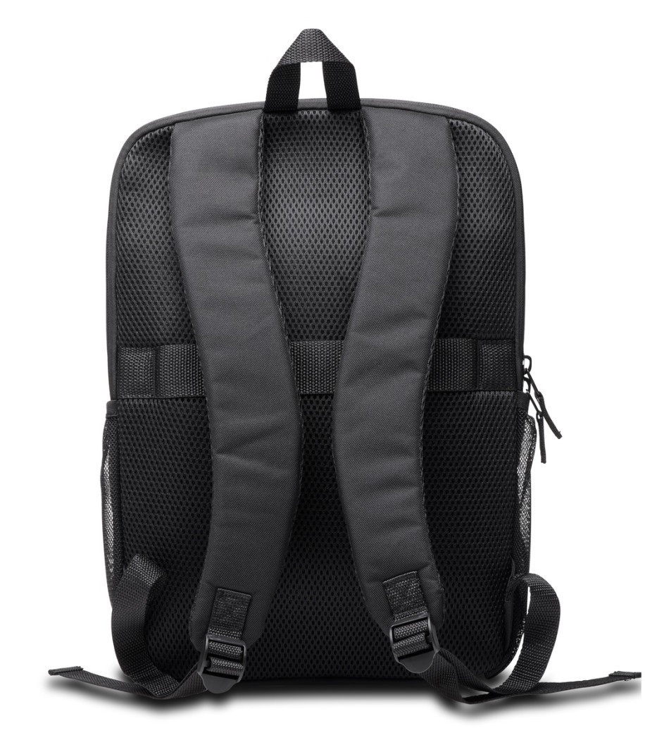 - narejen je iz 42 % poliestra, recikliranega po uporabi (PCR), vključuje oblazinjen predal za prenosni računalnik, sprednji predal z zadrgo za enostaven dostop do perifernih naprav in dvojna stranska žepa za plastenke z vodo ali dežnik