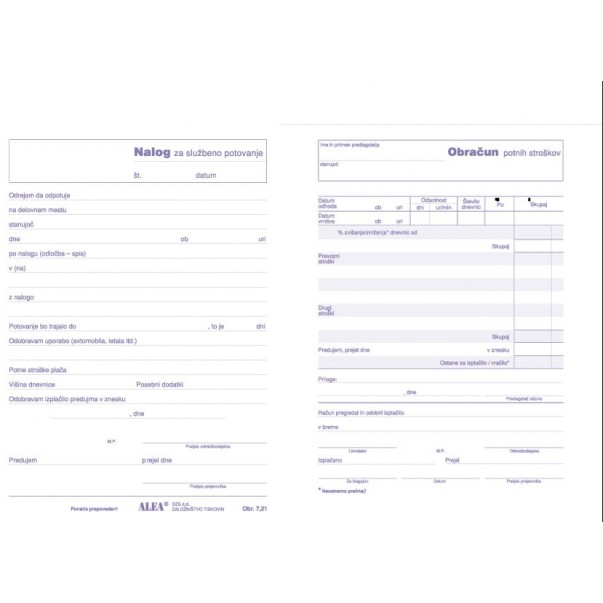 - nalog za službeno potovanje in obračun