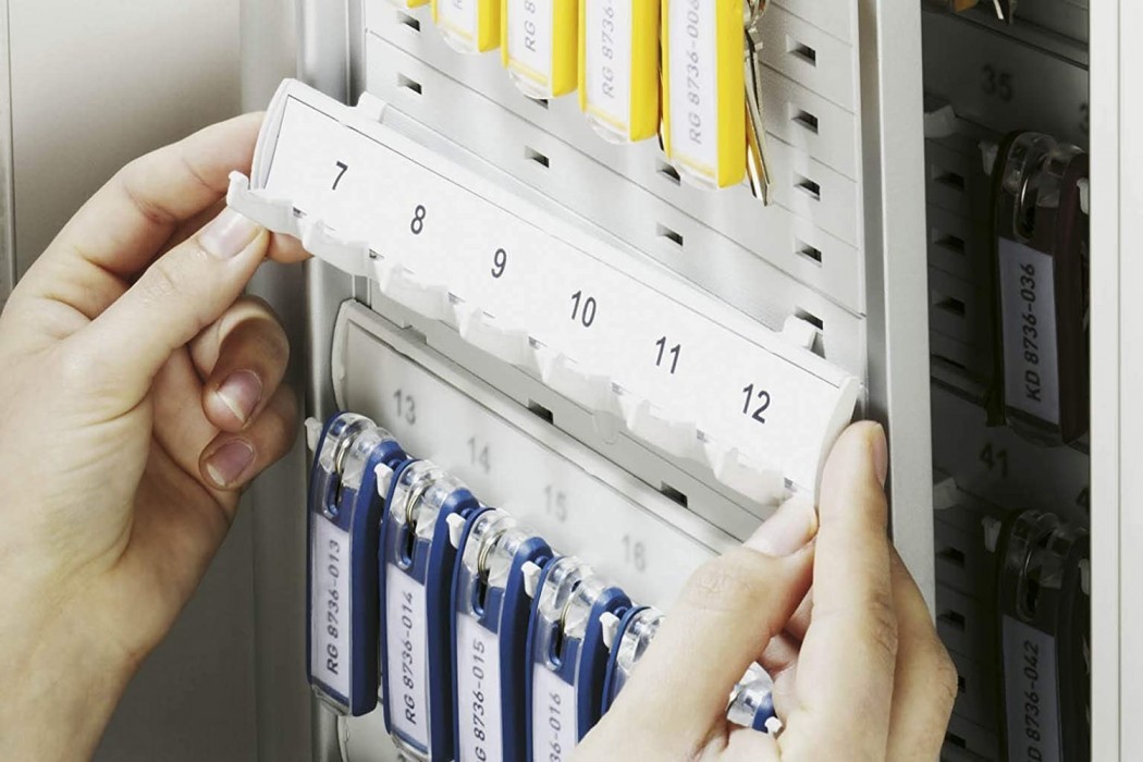 - omarica za shranjevanje ključev na patentiranih obeskih Durable 1957