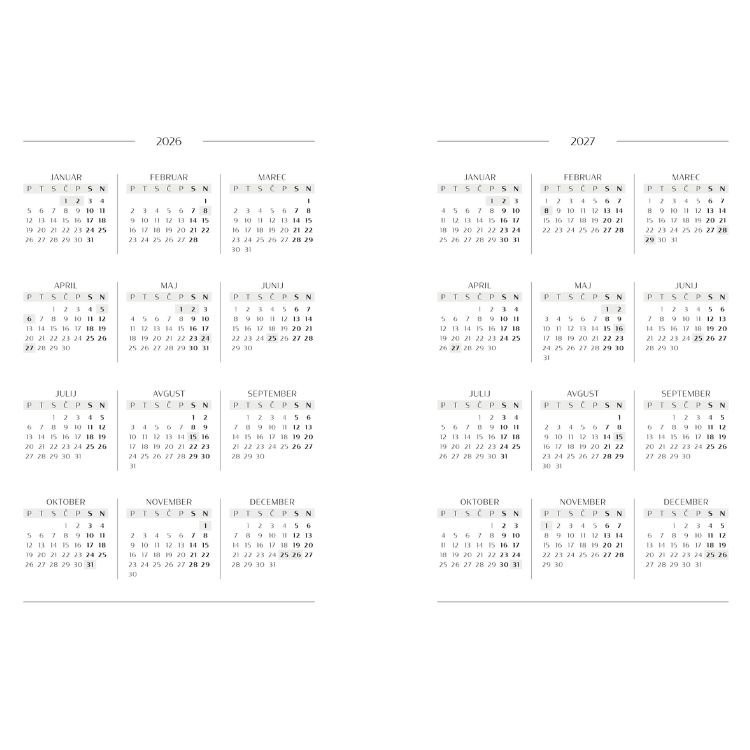 Koledarje za leta 2026, 2027, 2028 in 2029 – za dolgoročen pregled in načrtovanje.