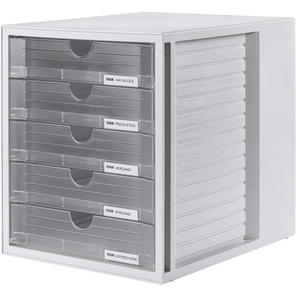 - višina je enaka višini registratorjev in je tako primerna za vstavljanje v pisarniške omare
