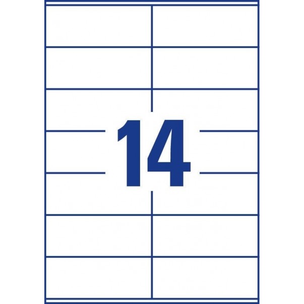 - AVERY ZWECKFORM bele univerzalne etikete s permanentnim lepilom 3477 v velikosti 105 x 41 mm so primerne na primer za označevanje vsebine. V zavitku je 1400 etiket.