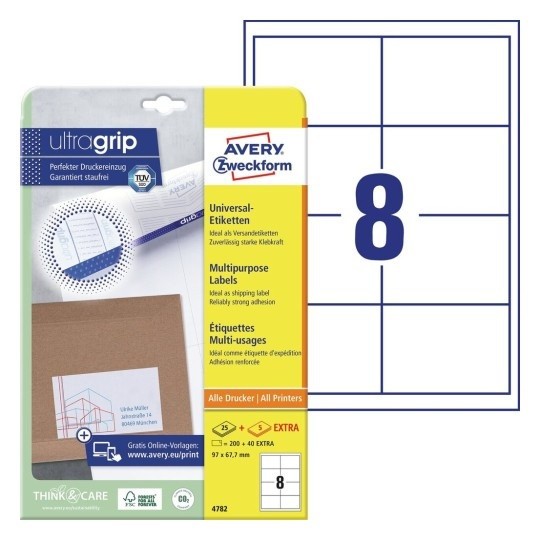 - z ultragrip, 97 x 67,7 mm, inkjet, črno/bel laser, barvni laser, A4