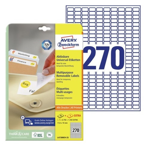 17,8 x 10 mm, inkjet, črno/bel laser, barvni laser, A4