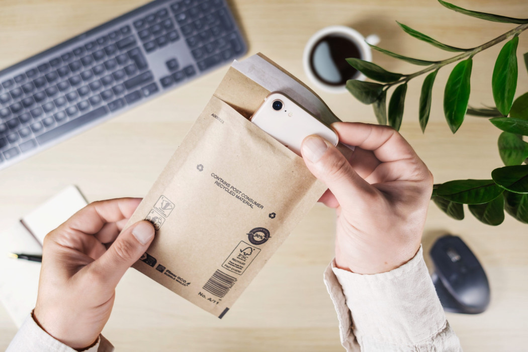 - papir vsebuje 100 % recikliranih vlaken s certifikatom FSC in mehurčkasto folijo najmanj 70 % recikliranih materialov