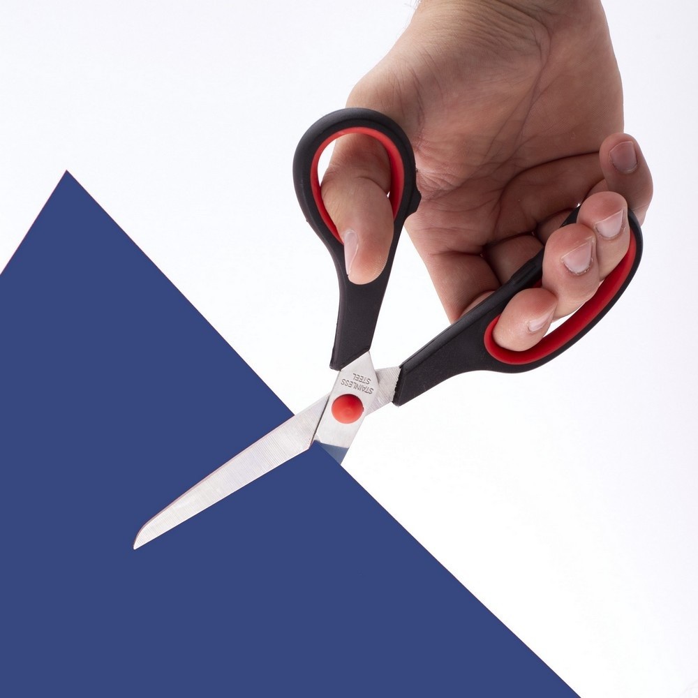 - površina škarij je prevlečena s posebno teflonsko fomulo, ki onemogoča da se lepilni trak prime na rezilo