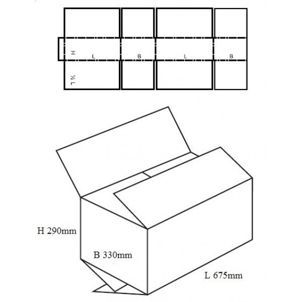 - izjemno stabilna škatla, velikosti 675 × 330 × 290 mm je narejena iz kvalitetne troslojne valovite lepenke