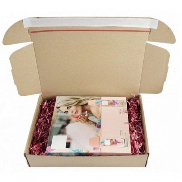 - paketna kartonska škatla s samolepilnim zapiranjem pokrova