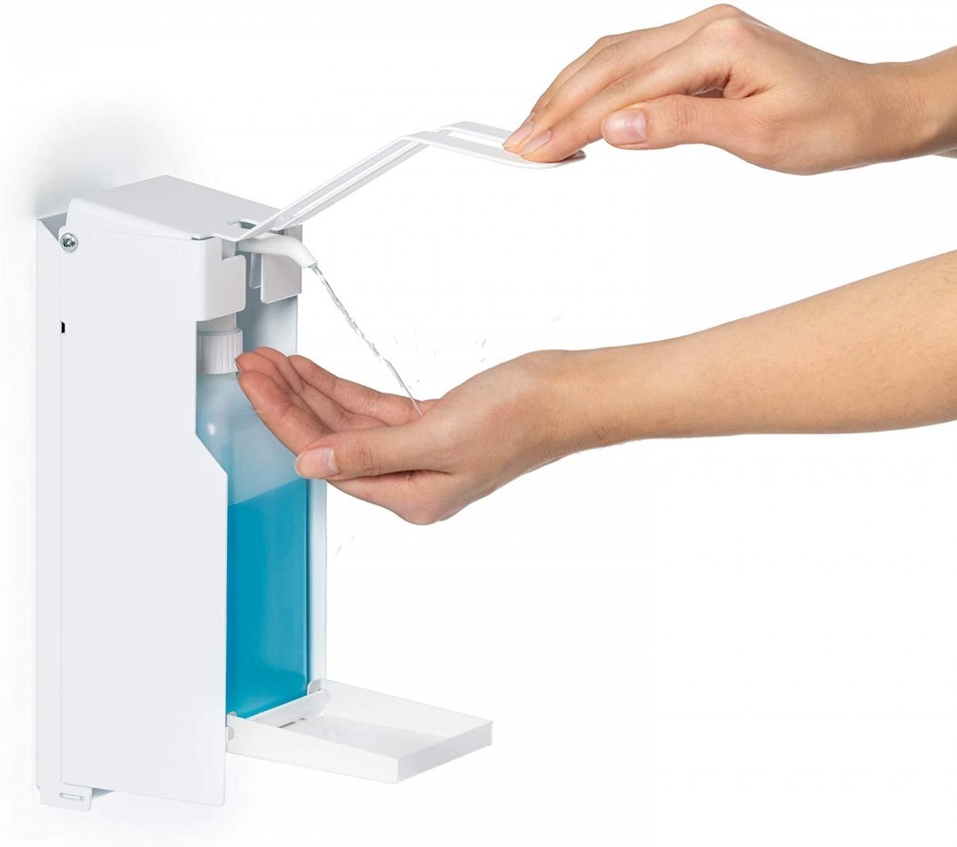 - trden, visokokakovosten dozirnik za dezinfekcijsko sredstvo ali tekoče milo za stensko montažo