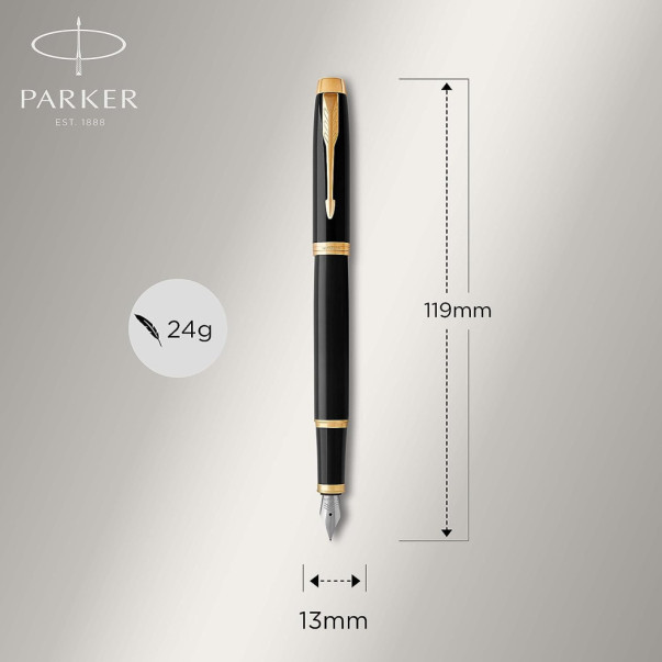 - duo set vsebuje kemični svinčnik in nalivno pero Parker IM v črno-zlati barvni kombinaciji