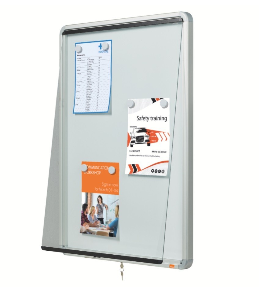 NOBO oglasna tabla 6xA4 z magnetno površino in ključem.