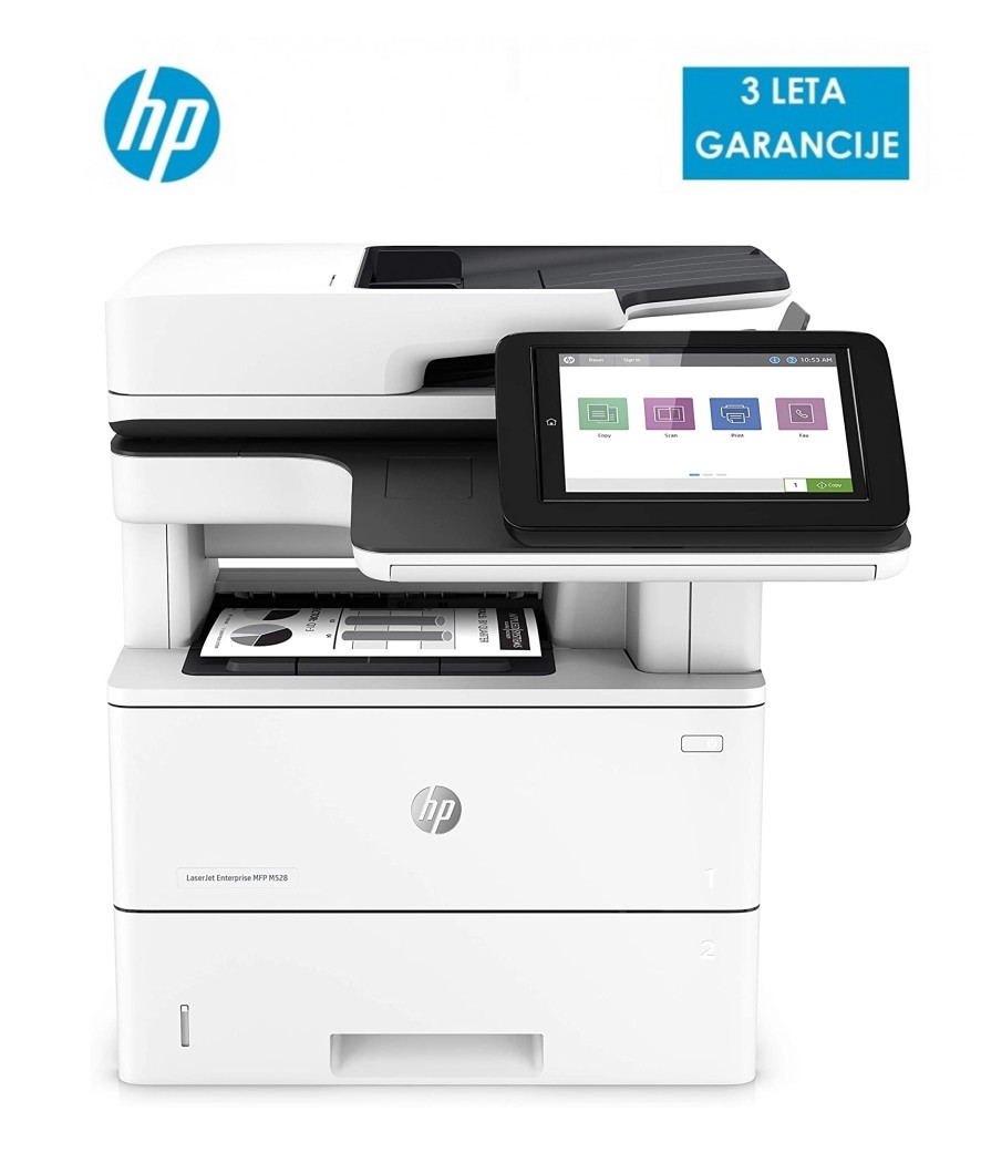 Izredno zmogljiva namizna mrežna večfunkcijska laserska naprava HP LaserJet Enterprise M528dn, ki je zasnovana za varno in učinkovito upravljanje poslovnih rešitev. Naprava omogoča tiskanje, kopiranje, pošiljanje e-pošte ter dvostransko skeniranje v enem prehodu. Konkurenčno prednost predstavljajo hitrost, profesionalni izpis, visoka kapaciteta papirja, več spomina ter možnost tisanja iz kjerkoli si želite. Velik 20,3 cm barvni zaslon na dotik, vam omogoča lažji dostop do aplikacij.