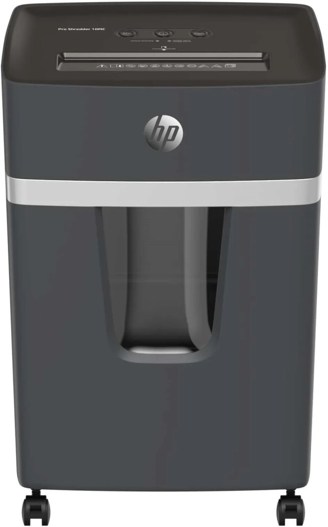 Kompakten uničevalec dokumentov HP 10MC, rez 2x15 mm za visoko varnost.
