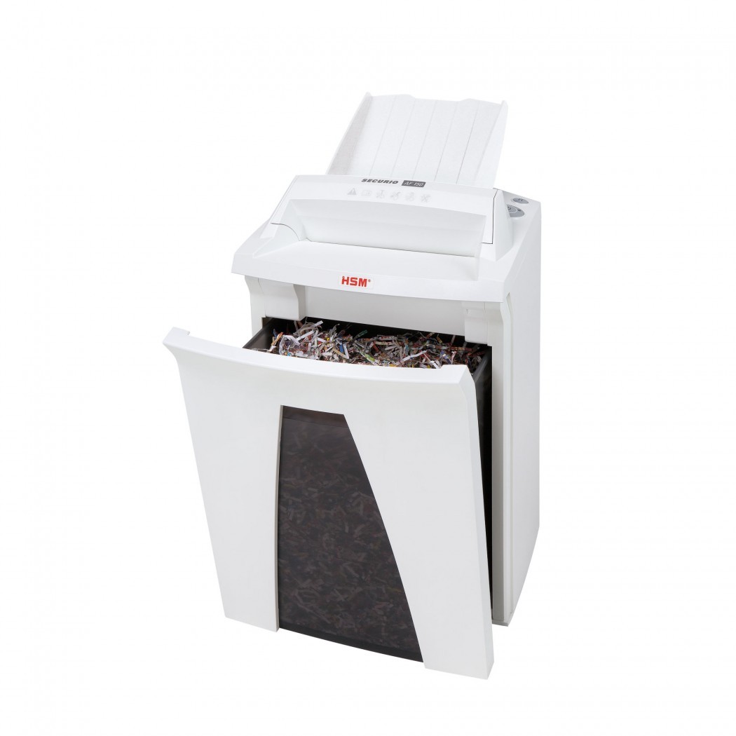 HSM Securio je vrhunski nemški uničevalec dokumentov, ki združuje zanesljivost, izjemno nemško kakovost in kar tri letno garancijo na delovanje, ob tem pa doživljenjsko garancijo na rezila. Opremljen je z avtomatskim podajalnikom papirja, ki omogoča hitro in brezskrbno uničevanje večjega števila dokumentov hkrati. Securio je popoln sopotnik za vsako pisarno, saj s svojim prefinjenim dizajnom in zanesljivim delovanjem poskrbi, da bodo vaši podatki vedno varno uničeni.