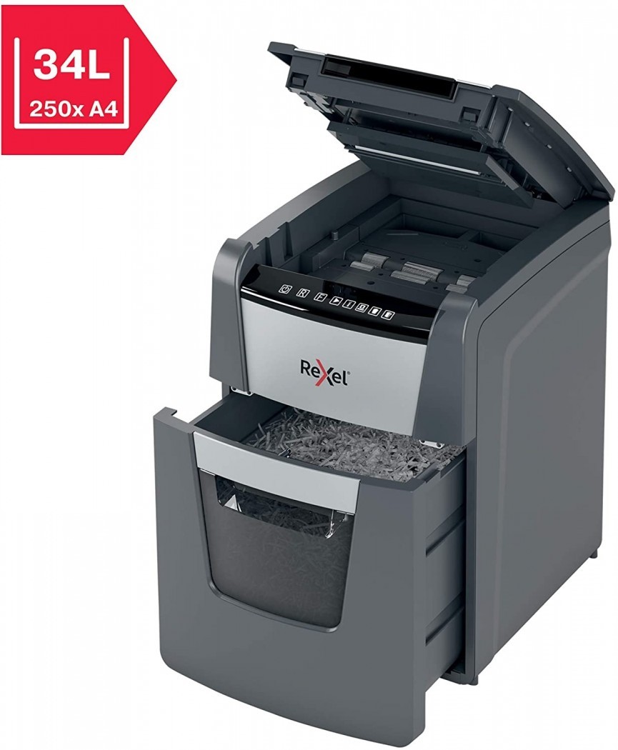 Rexel Auto – pameten uničevalec z avtomatskim podajanjem za brezskrbno varnost dokumentov.